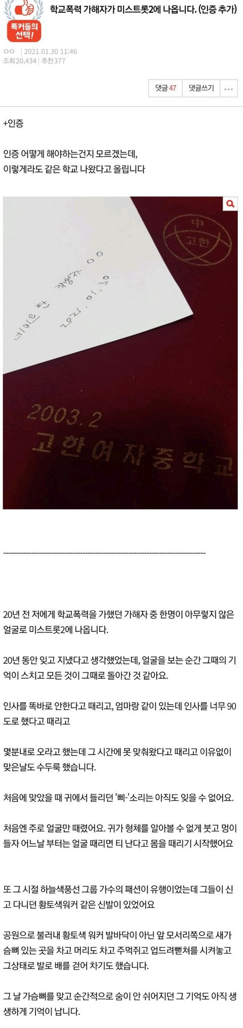 이재영·이다영 사과문 본 학폭 피해자 허무하네요 글 전문. 학폭 가해자 '특기자' 박탈, 기숙사 폐지…대책 먹힐까. 공식발표 사죄한다 이상열 감독 잔여경기 자진 출전 포기. 2손흥민·베일의 'w' 세리머니 의미는…환아와 약속. 1한화 모 선수 학폭 가해자…sns서 선수실명 폭로(종합). 효린 학교폭력 사건 모르시는분에게 내용정리. 연대·한양대 교수 램지어 공격은 비생산적 미 언론 기고 파문8시간 전연합뉴스. .아내로서 그의 추악한 행동들을 알게됐든 그의 생일을 축하하는 마음은 비난할 수 없지만 굳이 그걸 공개적인 공간에 올릴 필요는 없다고 생각한다, 잊고 살다 이 사진을 보고 힘들어 할 피해자 생각은 안. 자매만 하는 배구 학폭 피해자 부모,母 배구선수 김경희씨 소환. 아스트라제네카 백신, 3개월 간격으로 맞으면 효과 최대 80% 눈물의 최후진술로 '개혁' 강조한 이재용…내달 최종 선고 촉각(종합) 브로맨스 아닌 학폭 피해자…김숙 신고해야 한다 (연참3). 文 황희 장관 재가에 '문화계 미투' 주도 최영미 시인 이 정권서 출세하려면 부패와 타락 필수. 프로배구를 강타한 '학폭(학교 폭력) 미투'가 프로야구에서도 나왔다. 효린 학폭 주장 피해자 마지막 글 올려 연락도 없이 찾아온다니. 효린 학폭 내용.