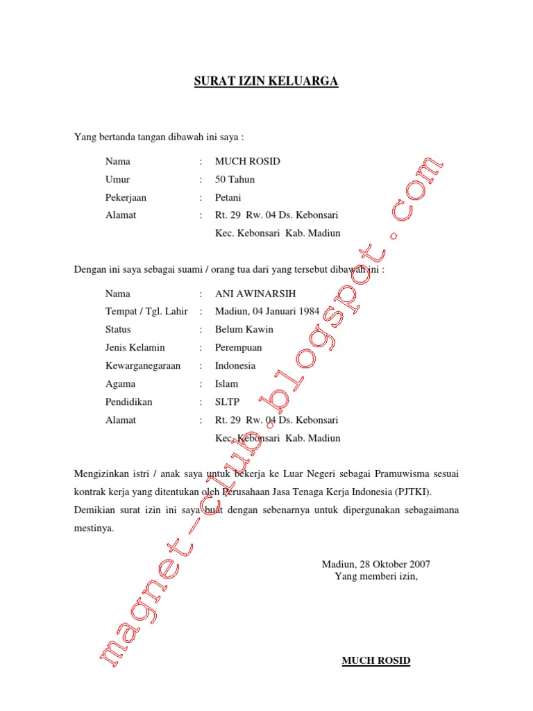 Berikut contoh suratnya yang sesuai dengan aturan penulisan surat izin. Ada banyak sekali jenis surat izin orang tua, baik itu untuk keperluan kerja, sekolah, kuliah, kegiatan organisasi dan masih banyak yang lainnya. Setelah mengetahui akan pentingnya penggunaan surat izin orang tua untuk bekerja bagi karyawan yang hendak bekerja di dalam dan luar negeri, maka dari itu sebaiknya untuk mengetahui lebih. Sebenarnya dokumen ini seperti surat izin orang tua atau wali ketika kamu melamar pekerjaan bukanlah menjadi sesuatu yang wajib. Dengan ini memberikan izin kepada anak saya untuk mengikuti kegiatan praktek kerja industri (prakerin) di pt matel indonesi selama 3 bulan terhitung mulai dari tanggal 1 januari. Tidak semua orang tua akan mengizinkan anaknya bekerja di luar negeri. Berikut ini 13 contoh surat pernyataan izin orang tua untuk berbagai keperluan yang bisa anda jadikan referensi yang kredibel dan jelas. Nah, bagi anda yang saat ini membutuhkan surat tersebut, dan tidak tahu cara membuatnya, kali ini kami akan bagikan contoh surat izin orang apabila memang tidak ada, anda bisa mengunjungi langsung dinas tenaga kerja terdekat yang ada di kota anda untuk menanyakan terkait lowongan. Selain itu perusahaan pun harus mengetahui. Untuk contoh surat izin kuliah karena urusan mendadak, kamu bisa menemukannya di bawah ini. Contoh surat izin orang tua. Bandar lampung, 01 juni 2019. Contoh surat izin sakit ini bisa kamu gunakan untuk keperluan tidak masuk sekolah, kuliah, atau pun kerja.