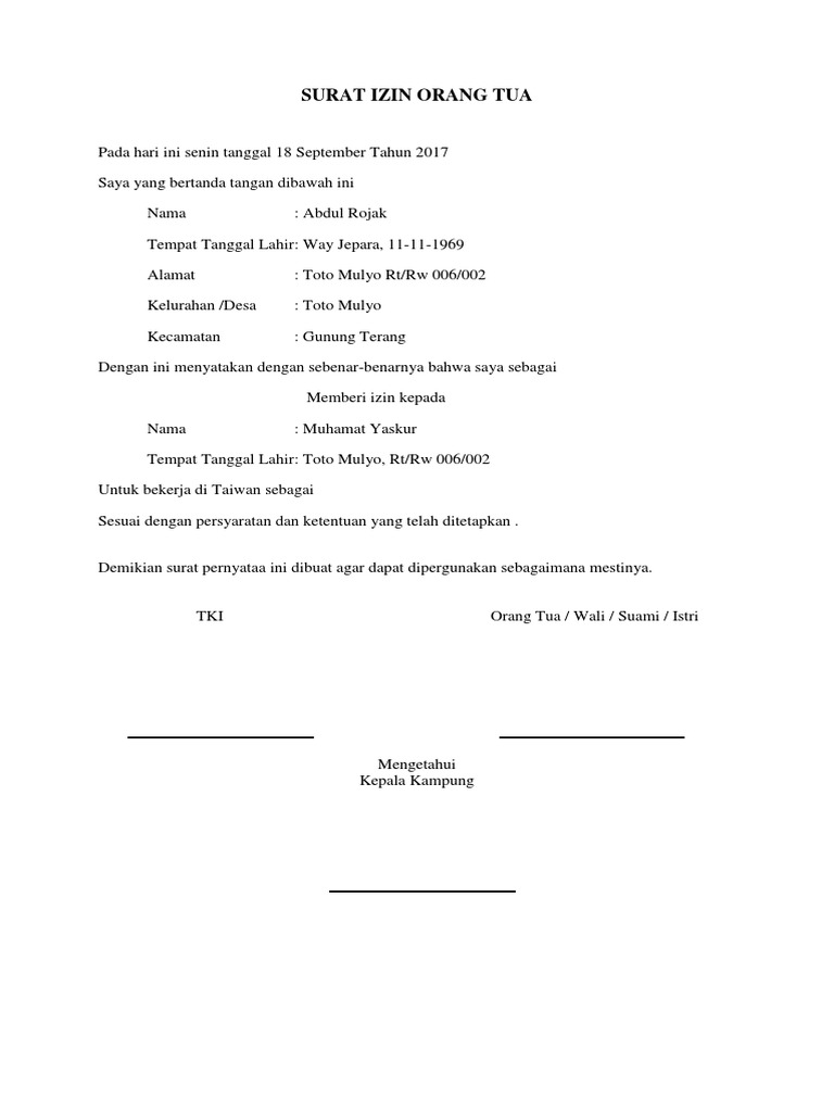 Nah, bagi anda yang saat ini membutuhkan surat tersebut, dan tidak tahu cara membuatnya, kali ini kami akan bagikan contoh surat izin orang apabila memang tidak ada, anda bisa mengunjungi langsung dinas tenaga kerja terdekat yang ada di kota anda untuk menanyakan terkait lowongan. Berikut ini 13 contoh surat pernyataan izin orang tua untuk berbagai keperluan yang bisa anda jadikan referensi yang kredibel dan jelas. Setelah mengetahui akan pentingnya penggunaan surat izin orang tua untuk bekerja bagi karyawan yang hendak bekerja di dalam dan luar negeri, maka dari itu sebaiknya untuk mengetahui lebih. Contoh surat keterangan izin orang tua untuk kerja. Pembuka pembuka surat biasanya berisikan dua baris kalimat utama yakni salam pembuka. Oleh karena itu diperlukan surat izin untuk memberitahukan secara resmi bahwa anda tidak bisa mengikuti kegiatan sebagaimana biasanya. Seorang karyawan atau anak sekolah ataupun lainya, jika. Dengan ini mengajukan permohonan izin selama 3 (tiga) hari kerja terhitung mulai tanggal 9 s/d 11 oktober 2017, untuk menghadiri acara wisuda. Surat izin orang tua untuk mengikuti kegiatan pramuka tahunan. Contoh surat izin adalah sebuah surat yang dibuat dengan tujuan untuk meminta izin kepada penerima bahwa sang pengirim memiliki hajat / acara tertentu sehingga tidak bisa hadir atau contoh surat izin cuti melahirkan yang baik. Jika barusan anda telah menyimak tentang beberapa contoh surat izin orang tua untuk kerja, maka setelah ini anda akan menyimak format surat ijin orang tua yang dapat anda akses dengan menyalin bagian berikut. Untuk contoh surat izin kuliah karena urusan mendadak, kamu bisa menemukannya di bawah ini. Poin penting surat izin orang tua.